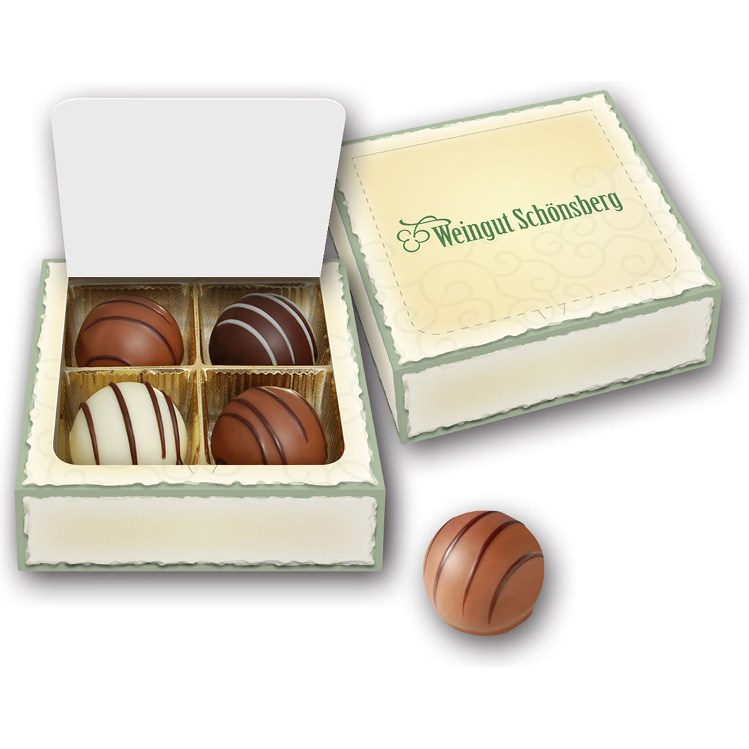 Befüllt mit exklusiver Trüffelmischung der Marke Dostler, mit dem unvergleichlich zarten Schmelz. Ohne Alkohol.