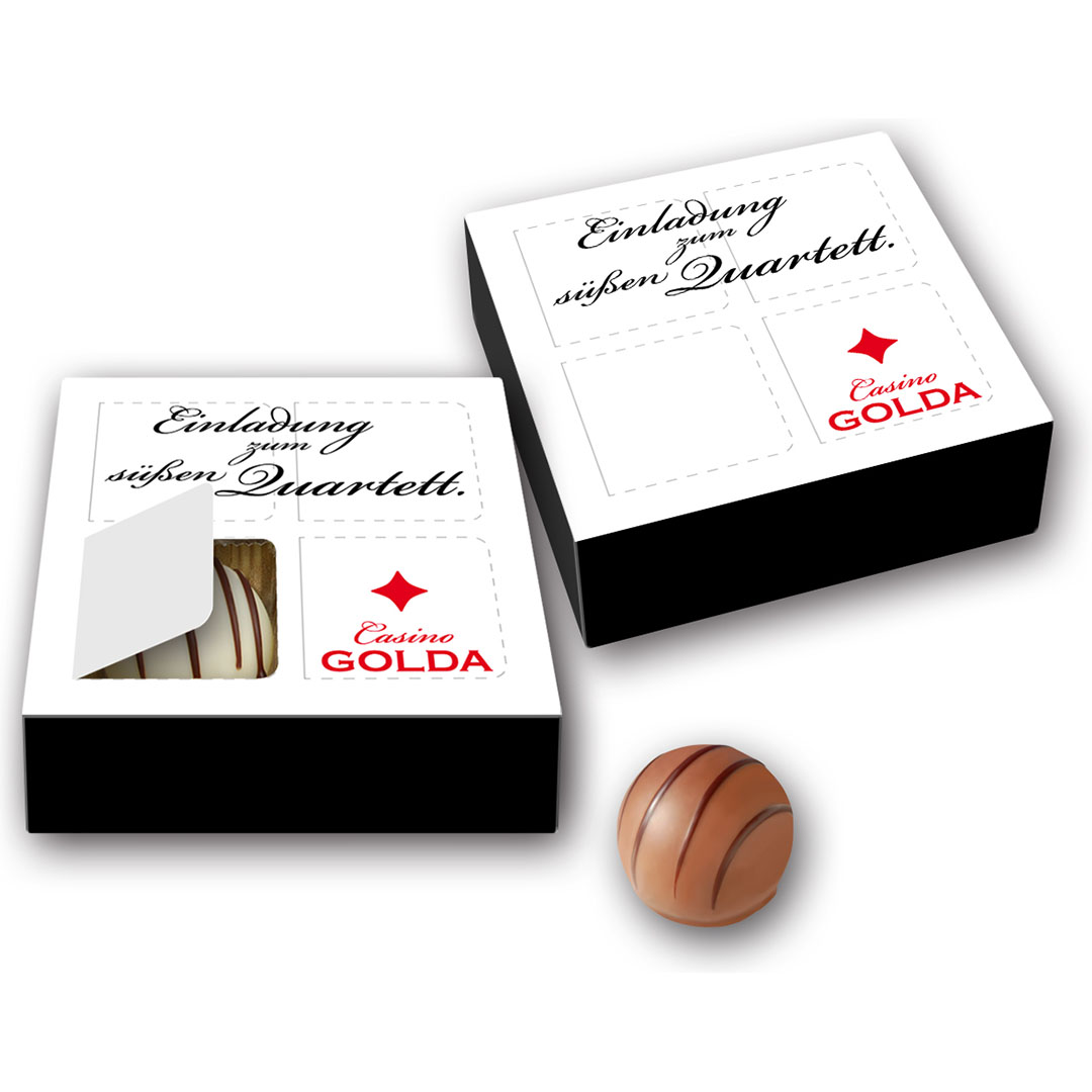 Befüllt mit exklusiver Trüffelmischung der Marke Dostler, mit dem unvergleichlich zarten Schmelz. Ohne Alkohol.