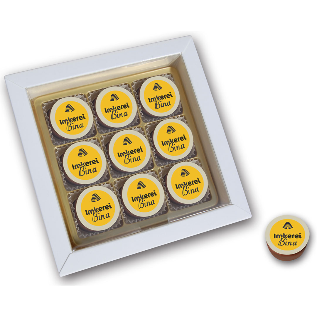 Befüllt mit exklusiven Trüffeltöpfchen der Marke Dostler, mit dem unvergleichlich zarten Schmelz, in der Sorte Vollmilch – Edelnougat.