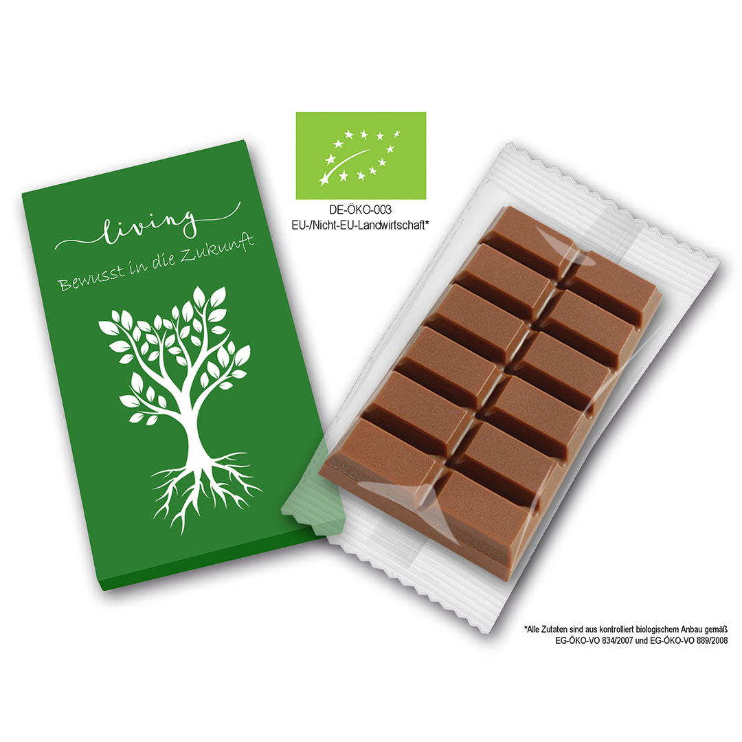 Handgeschöpfte, feinste BIO – Edel – Vollmilchschokolade der Marke Dostler, mit dem unvergleichlich zarten Schmelz.