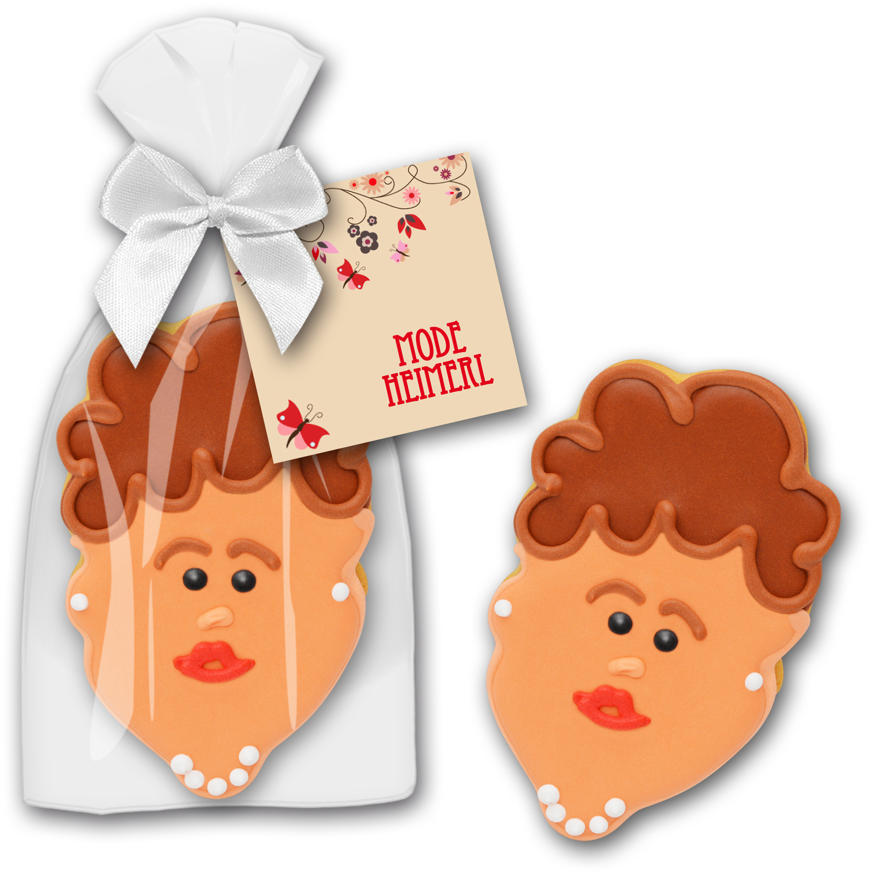 Verpackung | In Glanzbeutel mit weißer Satinschleife und bedruckter Karte aufgebunden. |