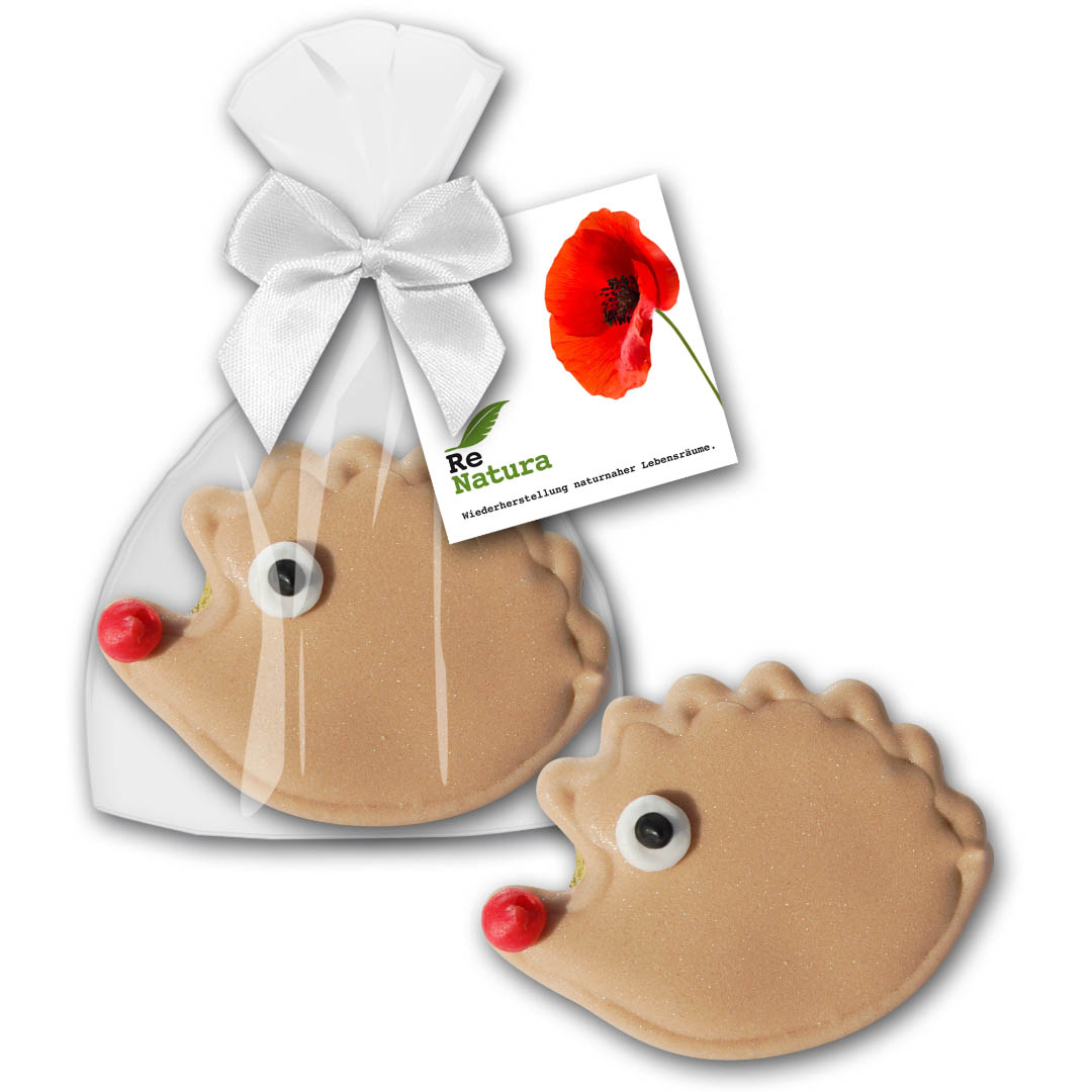 | Verpackung | In Glanzbeutel mit weißer Satinschleife und bedruckter Karte aufgebunden. |