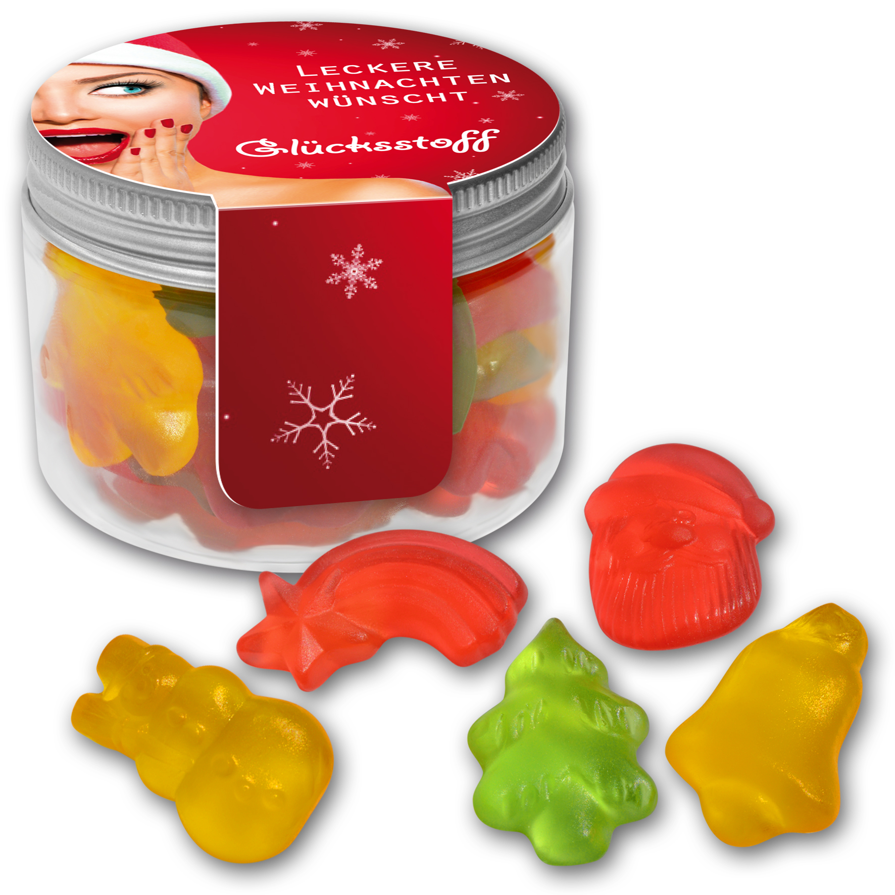 Weihnachtliche. bunte Fruchtgummi in Mini Tin.