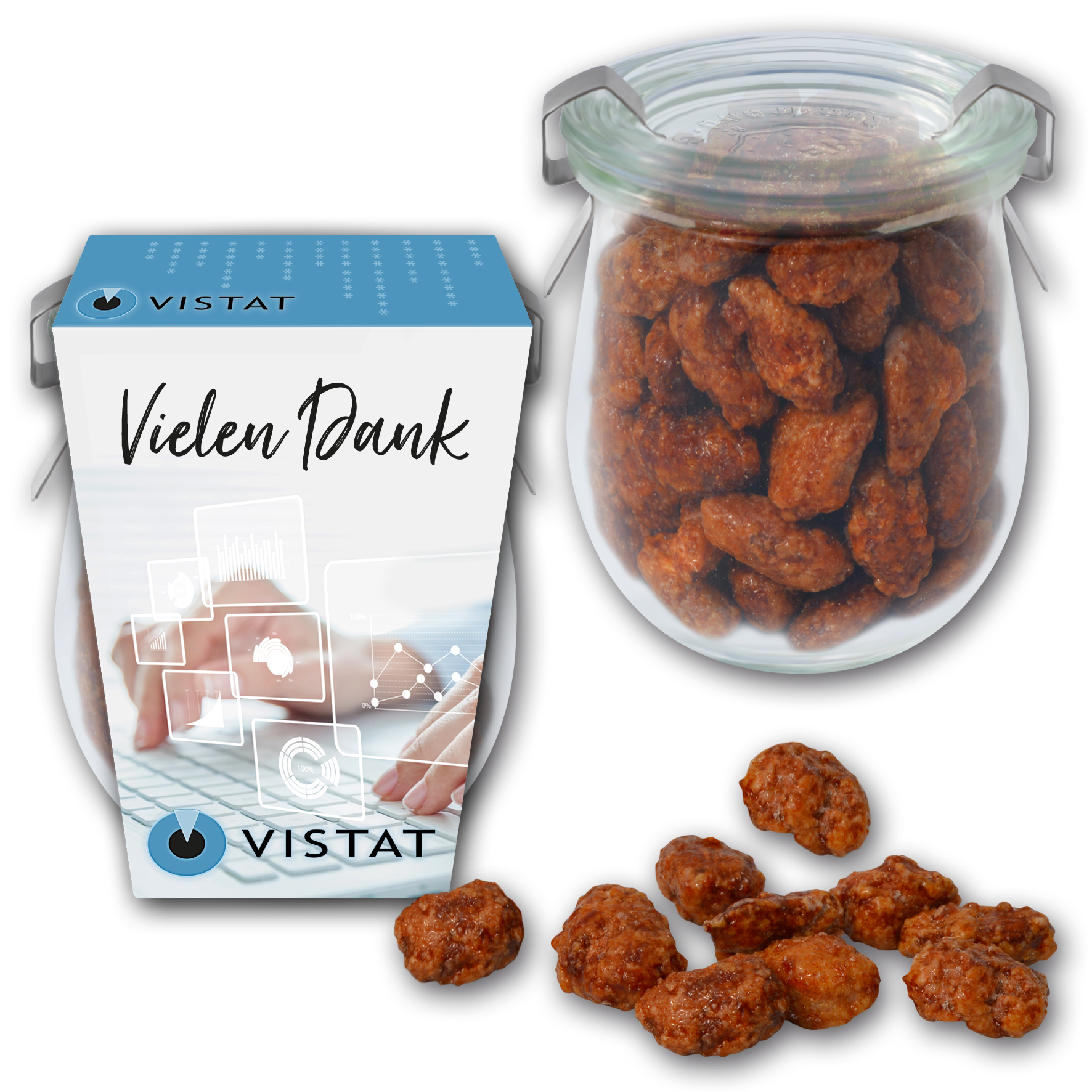 Verpackung | In Weckgals mit bedruckter Banderole verpackt. |
