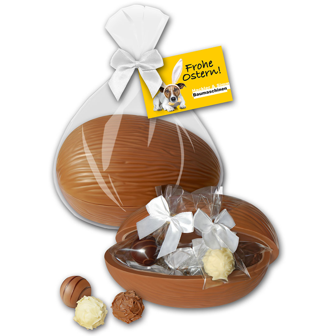 Aus feinster Edel – Vollmilchschokolade von Hand geschöpft. Mit exklusiven Trüffeln ohne Alkohol, einzeln aufgebunden, befüllt. Ein Hochgenuss aus dem Hause Dostler.