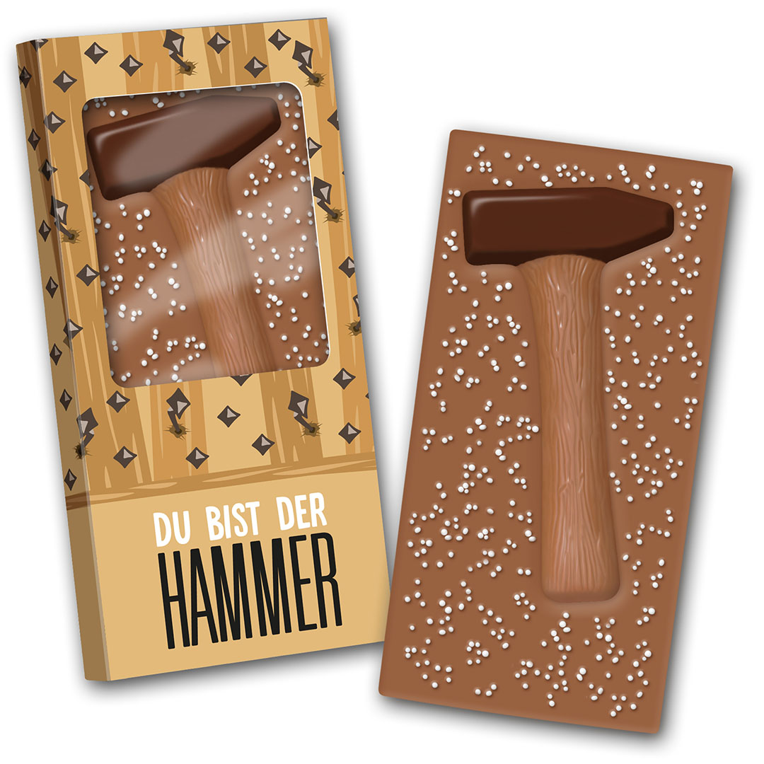 Feinste, handgeschöpfte Edelschokolade der Marke Dostler, mit dem unvergleichlich zarten Schmelz. In die Schokolade sind Schokoladenfiguren und Zuckerperlen eingestreut.
