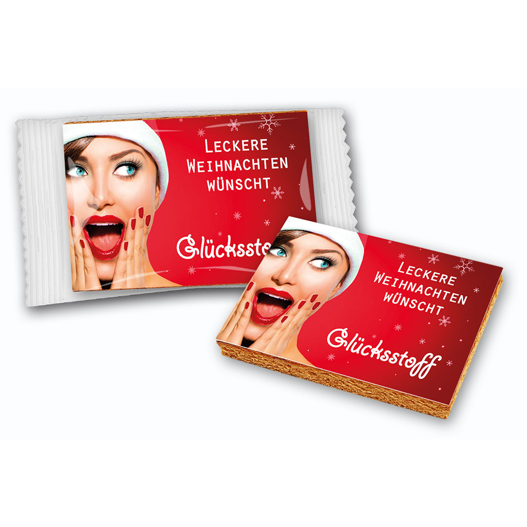 Brauner Lebkuchen (WEIZENMEHL, Zucker, Wasser, ROGGENMEHL, Backtriebmittel: Ammoniumhydrogencarbonat, Kaliumcarbonat; Gewürzmischung, Säuerungsmittel: Milchsäure; Farbstoff: Ammoniak-Zuckerkulör); Fondantpapier (Zucker, Glucosesirup, Feuchthaltemittel: E420; Wasser, hydriertes Palmkernöl, Stabilisator: E415, E410, E413; Konservierungsstoff: E202; Emulgator: E464).
