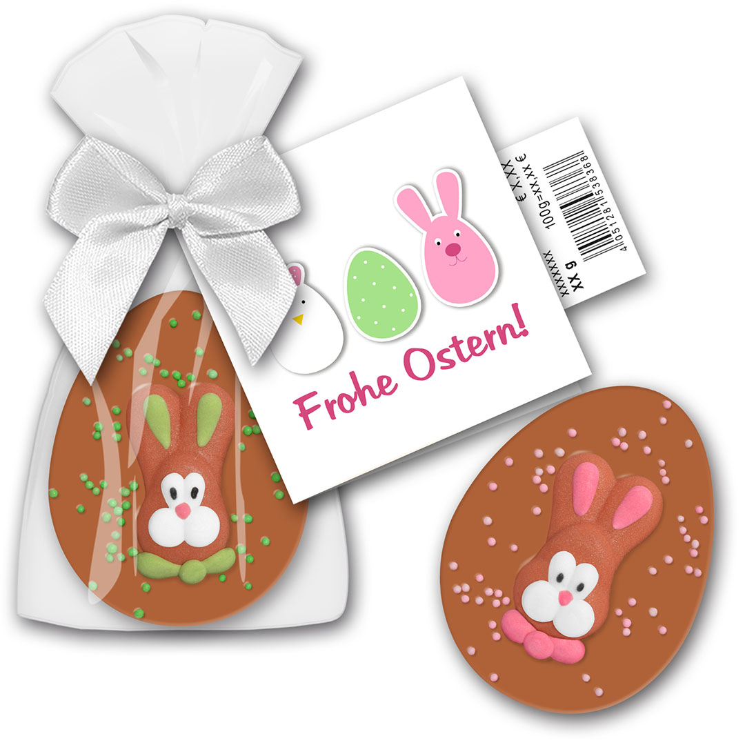Feinste, handgeschöpfte Edelvollmilchschokolade der Marke Dostler, mit dem unvergleichlich zarten Schmelz. Die Schokolade wird mit Zuckerperlen und Zuckerfigur von Hand verziert.