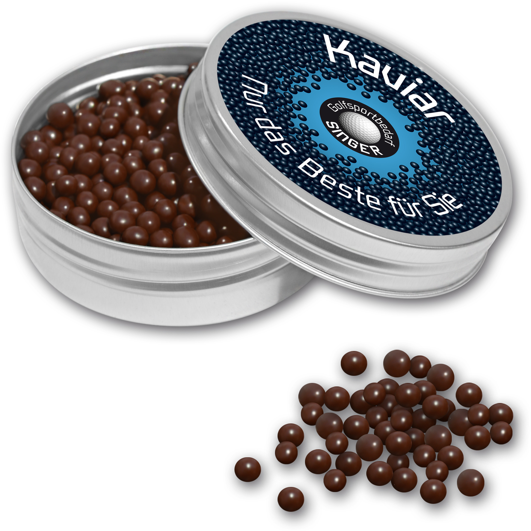Dostlers feinster Schokoladenkaviar, zart – knusprige Perlen mit feinster Edel-Schokolade umhüllt.