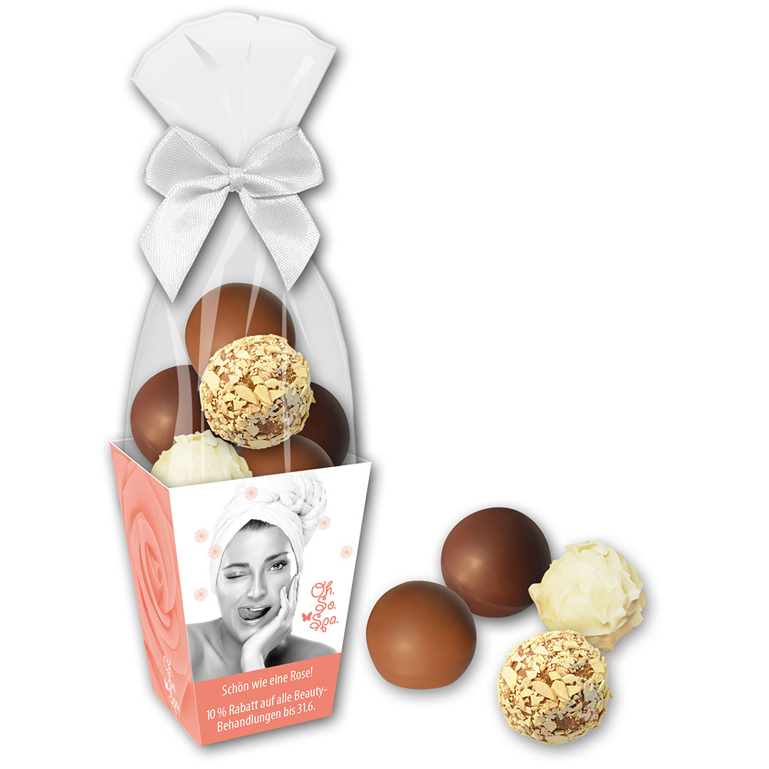 Aus feinster Edel – Schokolade von Hand geschöpft. Mit exklusiven Trüffeln ohne Alkohol aufgebunden und befüllt. Ein Hochgenuss aus dem Hause Dostler.