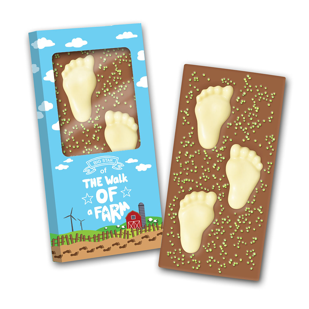 Feinste, handgeschöpfte Edelschokolade der Marke Dostler, mit dem unvergleichlich zarten Schmelz. In die Schokolade sind Schokoladenfiguren und Zuckerperlen eingestreut.