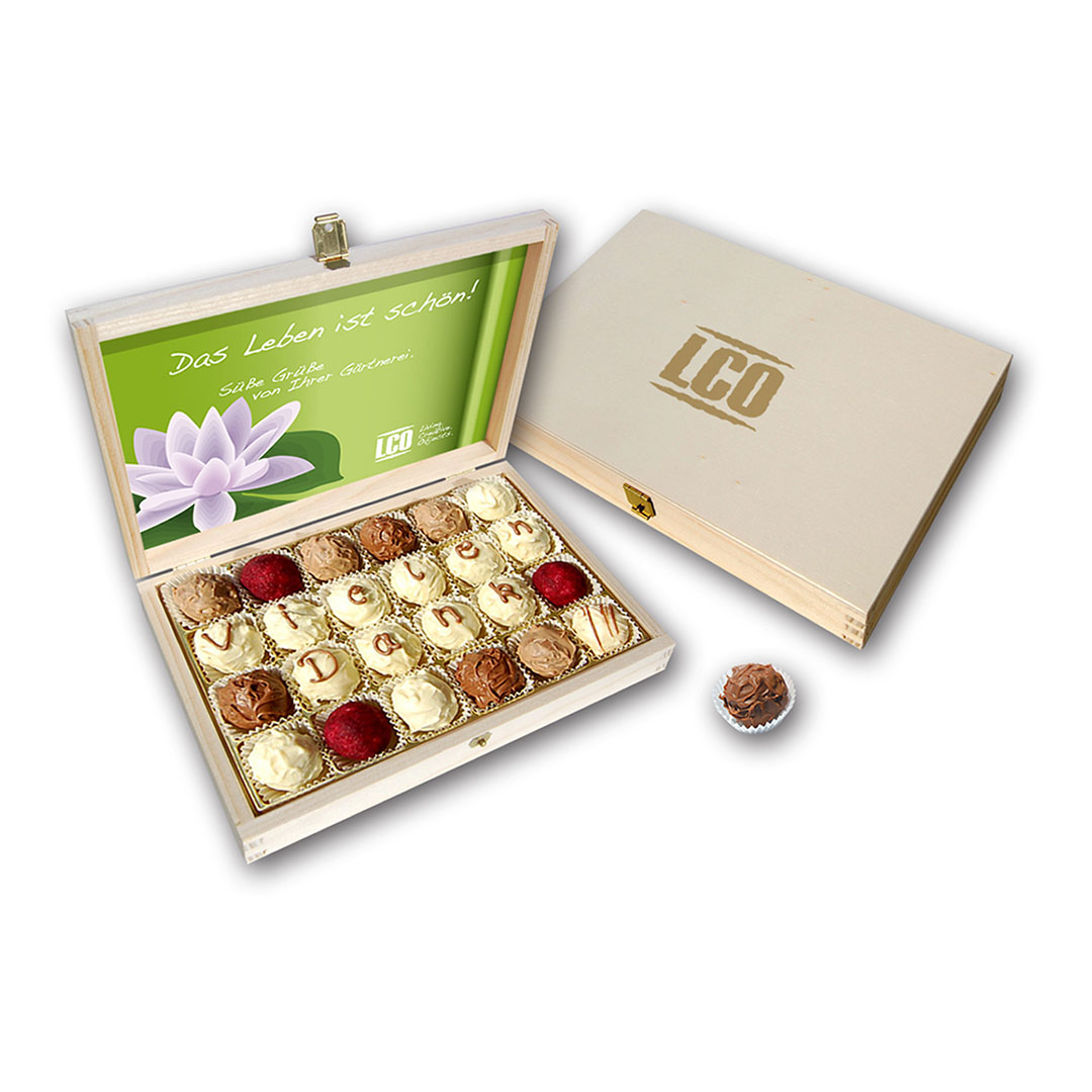 Befüllt mit exklusiven Trüffeln ohne Alkohol der Marke Dostler, mit dem unvergleichlich zarten Schmelz.