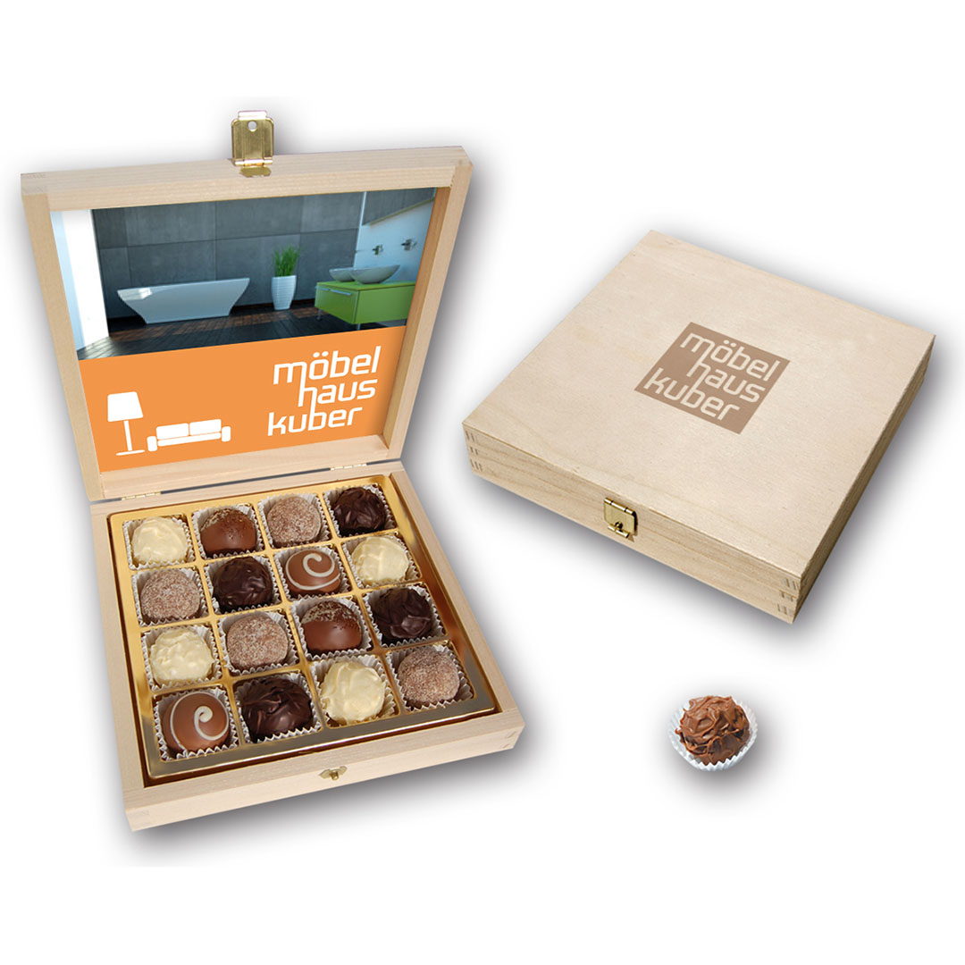 Befüllt mit exklusiven Trüffeln ohne Alkohol der Marke Dostler, mit dem unvergleichlich zarten Schmelz.