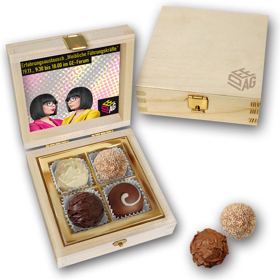 Individuell | Druckbereich Karte / Druckbereich Schokolade / Laserung Holzkiste |