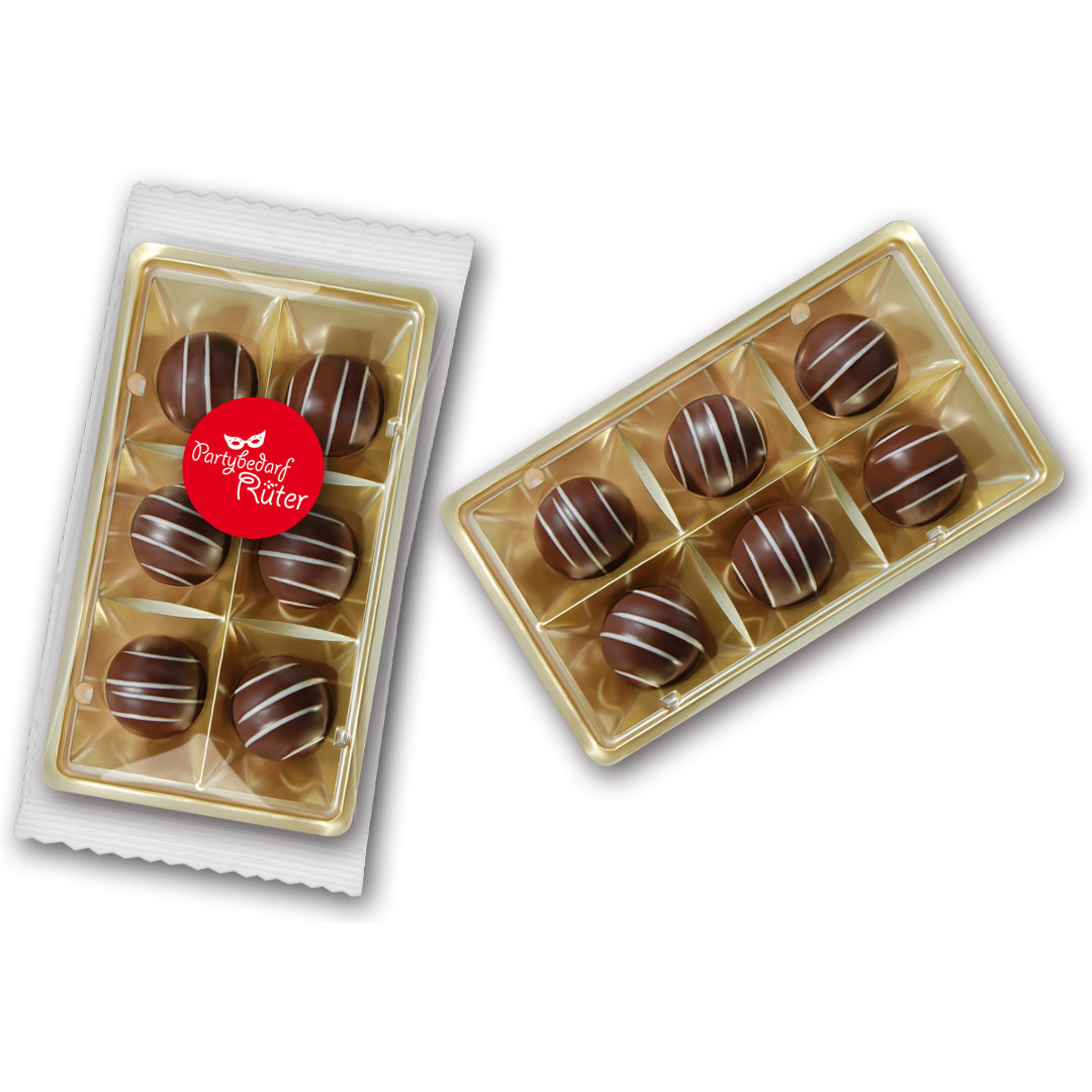Befüllt mit exklusiven Trüffeln ohne Alkohol der Marke Dostler, mit dem unvergleichlich zarten Schmelz.
