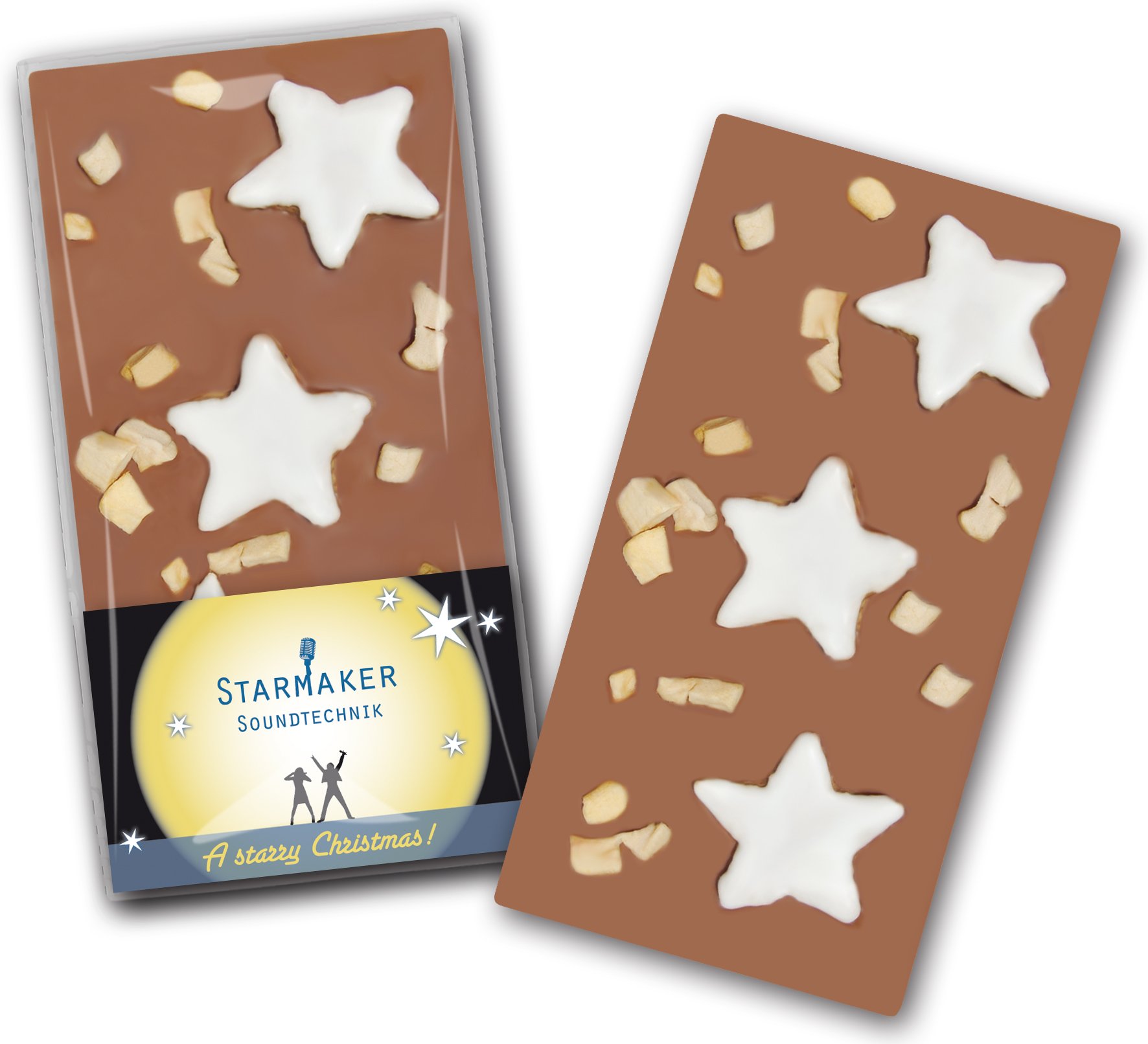 Handgeschöpfte, feinste Edelvollmichschokolade der Marke Dostler, mit dem unvergleichlich zarten Schmelz. Zwei Zutaten sind eingestreut.